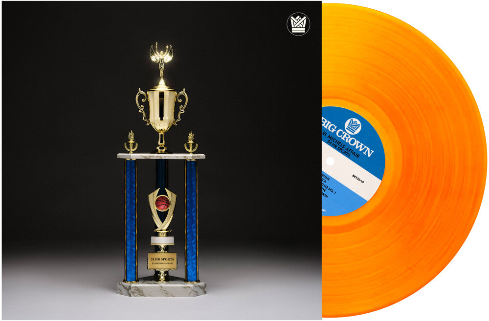 Leon Michels has quietly become one of the most sought-after producers in music. His signature sound has caught the attention of the mainstream while continuing to inspire the underground. Since 2023's El Michels Affair & Black Thought album Glorious Game, Michels has been busy producing records for other artists; Norah Jones' Grammy winning Visions, Clairo's Grammy nominated Charm, Kali Uchis' "Moonlight", as well as albums for labelmates Brainstory, Derya Yildirim & Grup Simsek, Thee Heart Tones, and Liam Bailey. His new album 24 Hr Sports marks the highly anticipated return to recording under his own moniker, El Michels Affair. 24 Hr Sports was inspired by the fashion and graphic design of '80s & '90s Sports Illustrated magazines, MF DOOM's Special Herbs albums, the sample sources used on them, and gospel music a la Pastor T. L. Barrett. The sum of those influences with Michels' impeccable creative touch prove to be the recipe for an instant classic that will surely be one of the most heralded releases of 2025. The album opener "Drum Line" is an anthemic, uplifting tune with marching band drumming and thundering brass arrangements that command undivided attention and set the tone for what's to come. 24 Hr Sports sees a significant departure from the largely instrumental music of the El Michels Affair catalog with a roster of vocal features that manages to mirror the undefinable genre of his music. The first one on the album is "Mágica" which features Brazil's Rogê. He takes the already pumping energy of the track over the top with his fútbol inspired lyrics. Moving from Brazil to Ghana, "Say Goodbye" features Florence Adooni who touts her individuality with an effortless swag jumping between Frafra and English, telling it like it is in the earworm chorus, "never gonna find a girl like me... ". Labelmate and world renowned trumpeter from The Roots, Dave Guy joins the '70s groove of "Oakley's Car Wash" with his distinct horn lines before the track switches lanes, closing with a dubby outro. From raucous to serene, "Anticipate" featuring Clairo picks up on the musical synergy between her and Leon that created 2024's Charm album. Clairo rides signature EMA arrangements perfectly as she pines for an unattainable love over the band's airtight instrumentation. "Eastside" is a song that could soundtrack a sunrise over the ocean, putting Leon's tasteful use of space and arrangement on a pedestal. By way of Japan, The Suginami Children's Choir join in on the lush "Clean The Line" singing a song about the moon, the sun, and birds. Next, "Cortex" kicks in the door with gritty distorted guitars and thundering drums that puts a moment of pure cinematic intensity in the middle of the album. Leon himself handles lead vocals on "Shining," a song about looking for a friend to share the joys of a sunny day with. The universally adored Shintaro Sakamoto is featured on "Indifference", a swanky tune built on bouncing basslines and flute chops. Shintaro uses the arrangements to go from singing to speaking, musing over a fleeting love. The Grammy winning duo of Norah Jones and Michels reunite on "Carry Me Away" with Jones' honeyed vocals soaring over a track that is hard to place but easy to love. Leon leans into El Michels Affair territory on the tune that sounds decidedly different from the Norah Jones records he has produced. "Take My Hand" puts gospel influence front and center with the Fabulous Rainbow Singers choir on the chorus and a saxophone solo from the late great Rahsaan Roland Kirk. "Open Season", a mid tempo, piano driven number with group vocals chanting "we want the gold, we want the gold... " could soundtrack a slow motion highlight reel, while the aptly titled album closer "Victory Lap" is a dreamy euphoric wind-down worthy of the record that just finished. When all is said and done, the trophy on the cover of the album speaks volumes. El Michels Affair is champion sound and 24 Hr Sports hammers that home.
